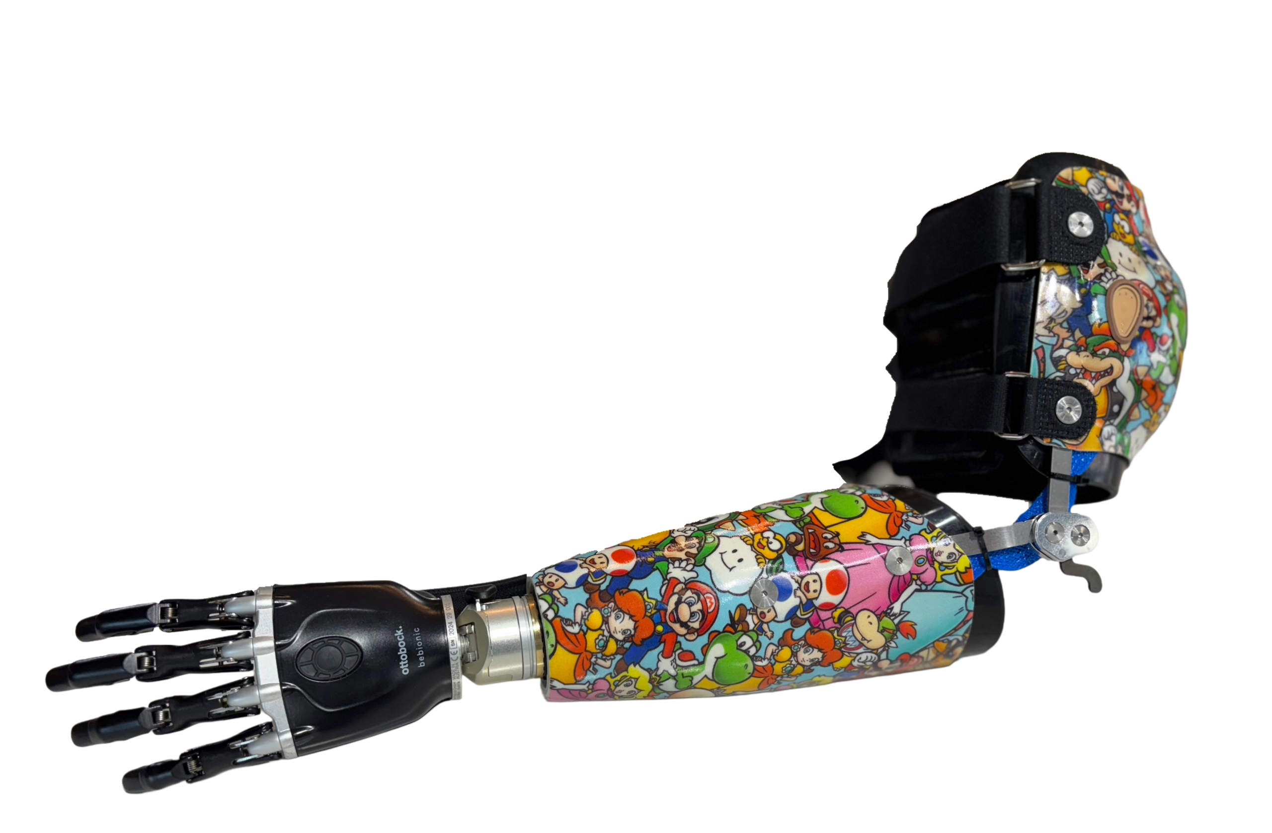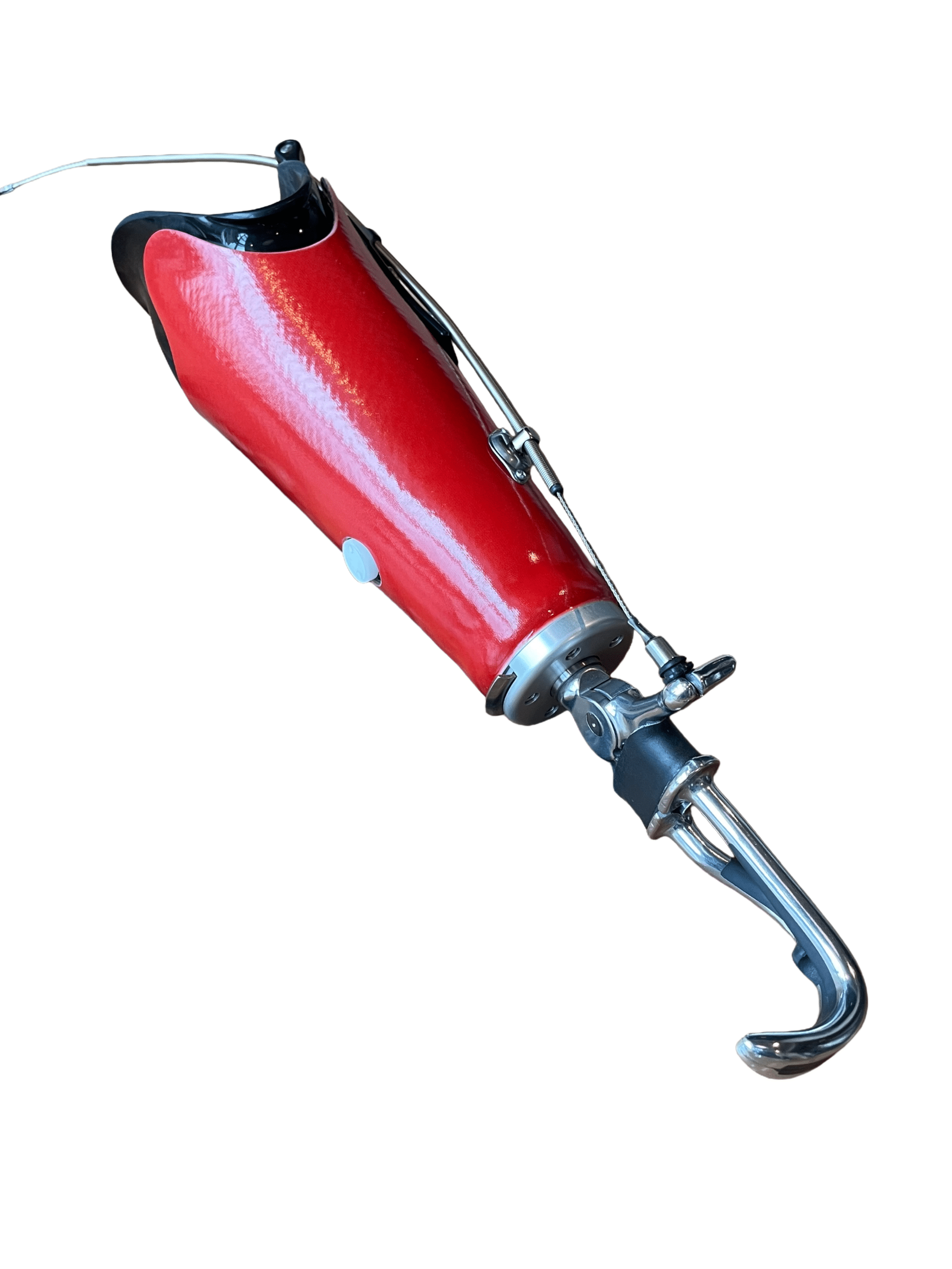 Body-powered devices are intended for heavy-duty use and combine a prosthetic hook or hand, a harness, and cables for optimal function and stability. By using muscles to pull on the cable, the wearer can open and close the hook or hand to grasp objects.