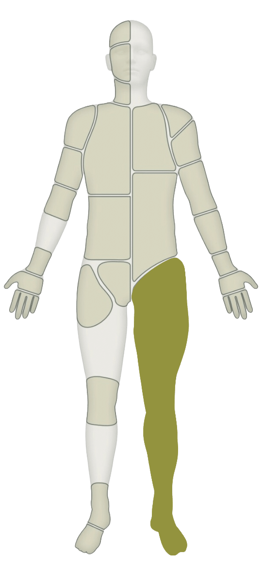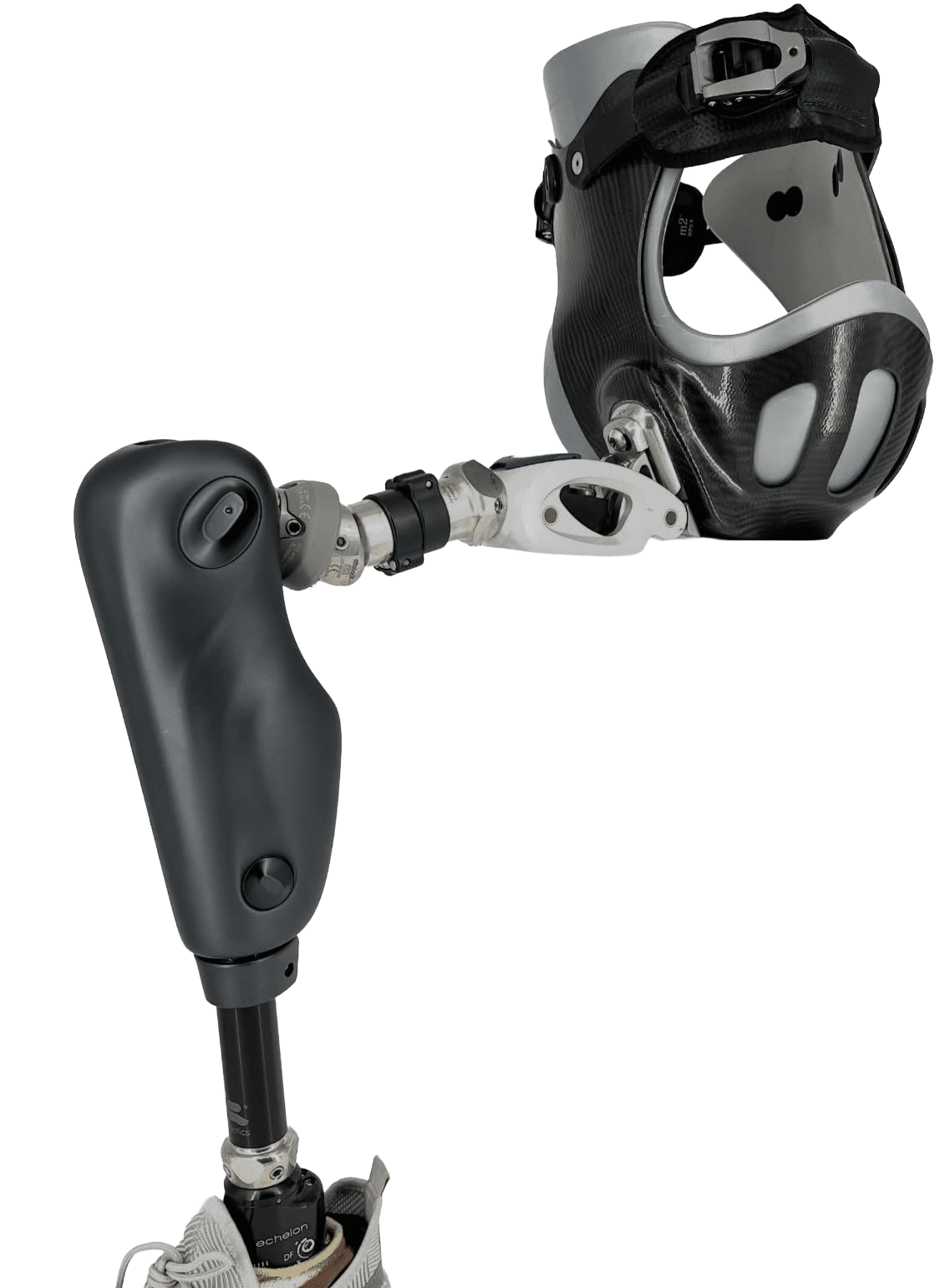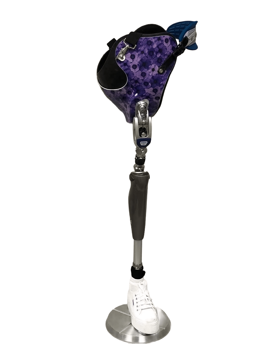 Hemipelvectomy and hip disarticulation prosthetics replace the entire leg from the hip down and are designed for individuals with a high-level lower-limb amputation. The custom socket fits around your pelvis, and the artificial leg—complete with a prosthetic hip, knee, and foot—attaches to it.